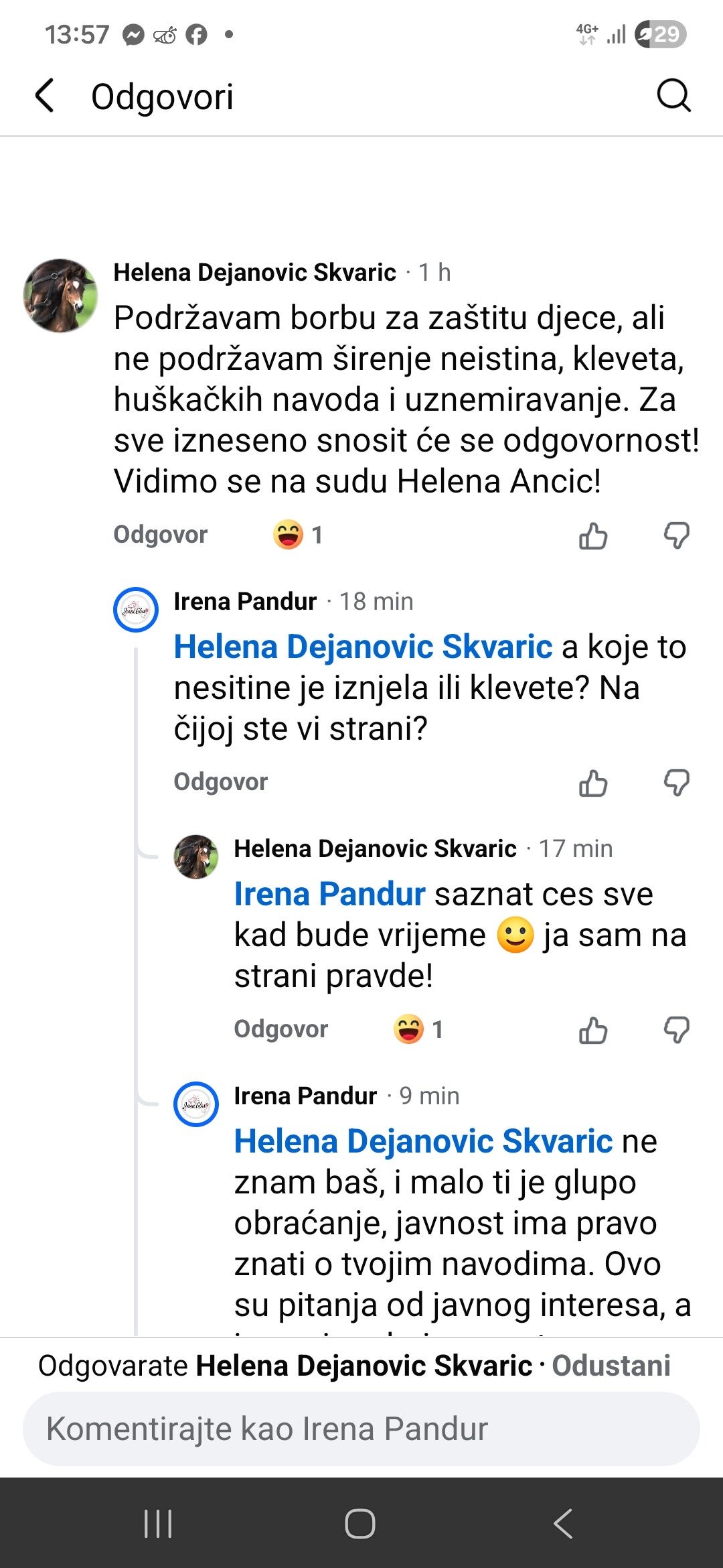 Ovakav odgovor, koji ne nudi konkretne argumente već se oslanja na prijetnje i pozicioniranje 'na strani pravde', dodatno potpiruje sumnju u njezine tvrdnje i sugerira pokušaj zastrašivanja.